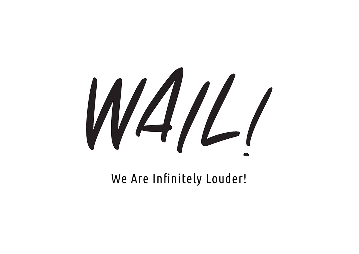 We Are Infinitely Louder, or WAIL! for short, comes from the term used often by rock stars and musicians alike to signify "hitting the money high notes". The logo itself utilizes a brush typography in capital letters to accentuate the loudness, rebelliousness, and the human aspect of urban-rocking millennials.