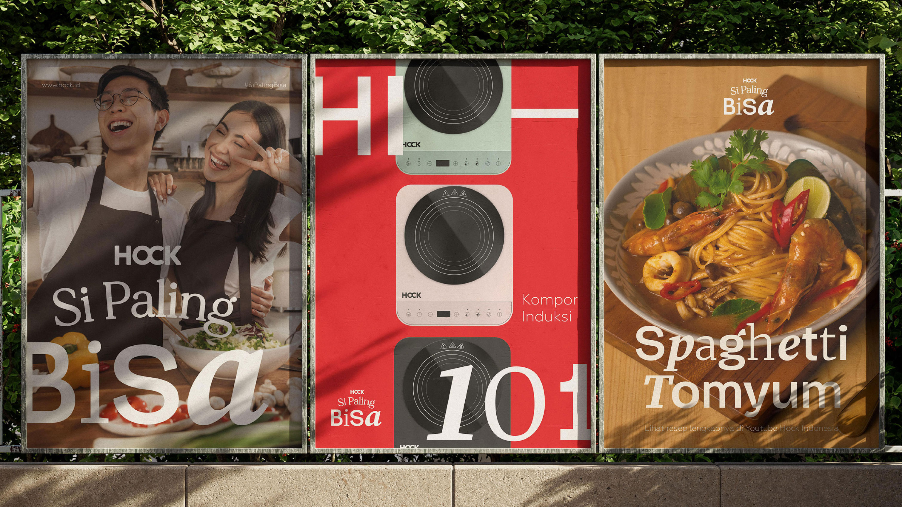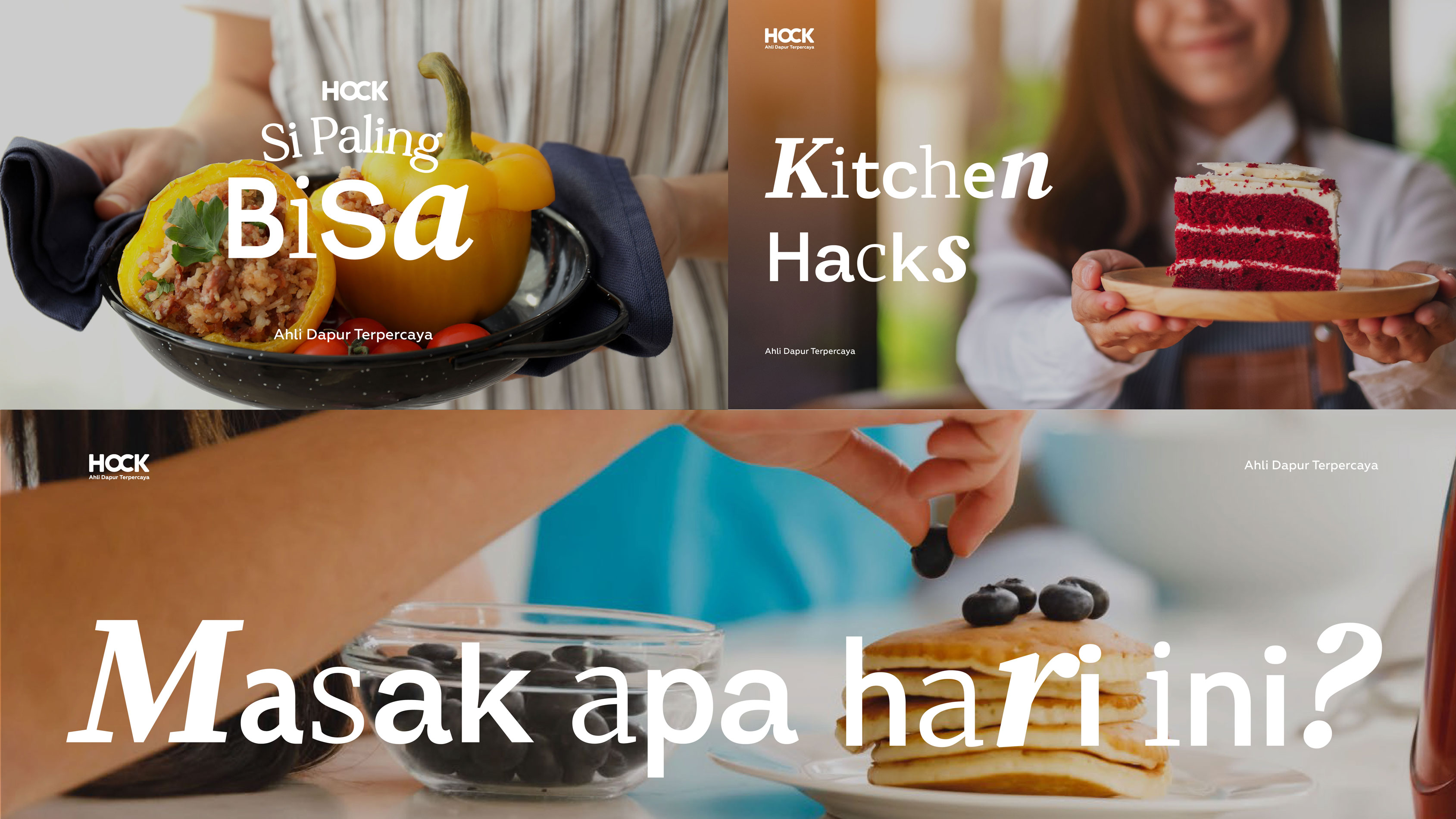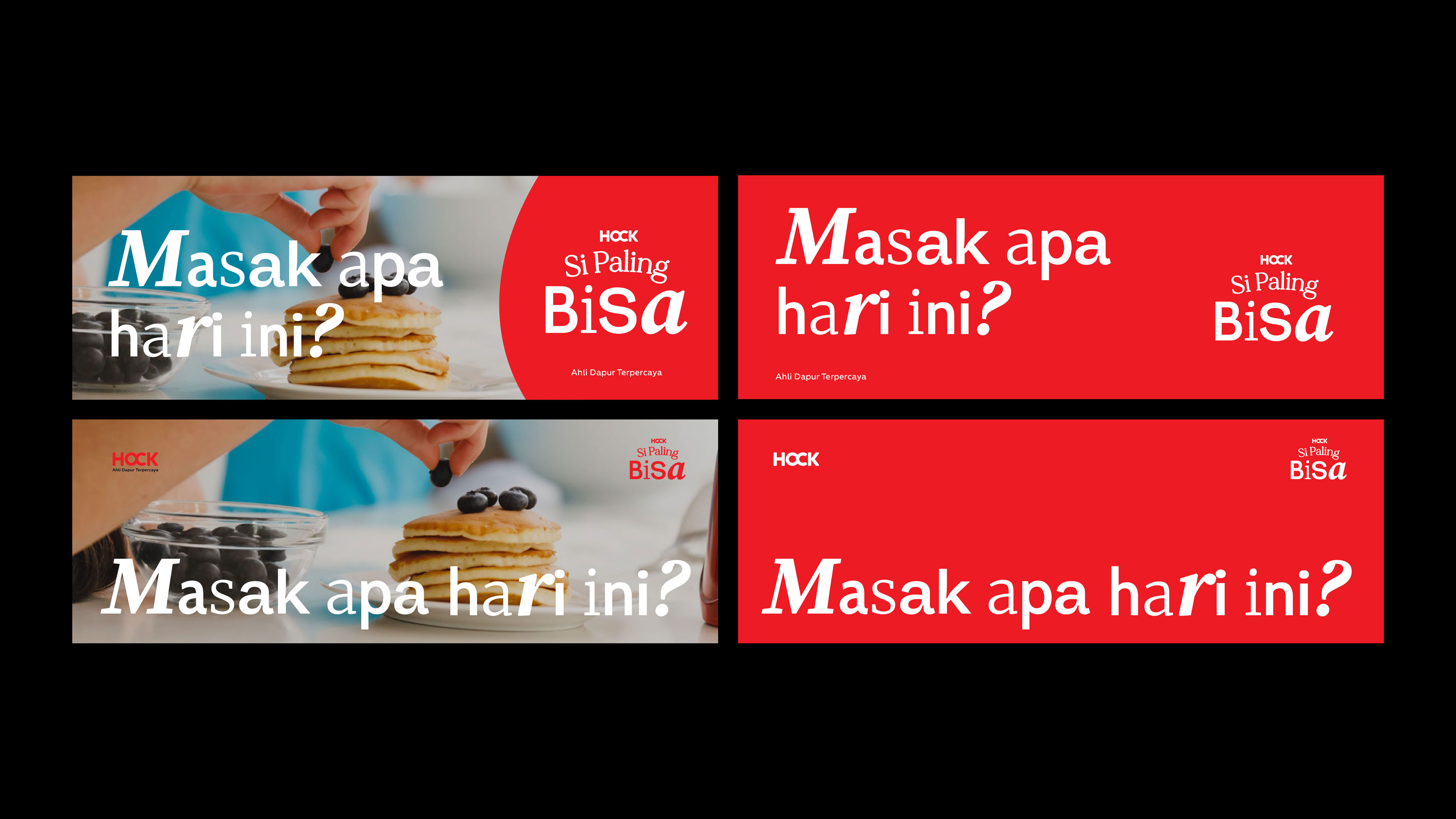 The campaign #SiPalingBisa is Studio Tinker's twist on the "Si Paling ____" trend circling about in the Indonesian digital landscape circa 2023. Its striking key visuals stem from the myriad uses of 6 typefaces, all interchangeable per character as the main headlines and video title—signifying that whatever you want to make, no matter how weird, HOCK's got your back with their repertoire of ever-growing products. The campaign also involves professional chef from Hell's Kitchen Indonesia, Chef Ben Imantaka as the recipe consultant and hand talent for the shots, making sure that every weird idea—such as Fried Pudding or Cassava Leaf Lasagna—is tasty and very much a possibility to re-create.
